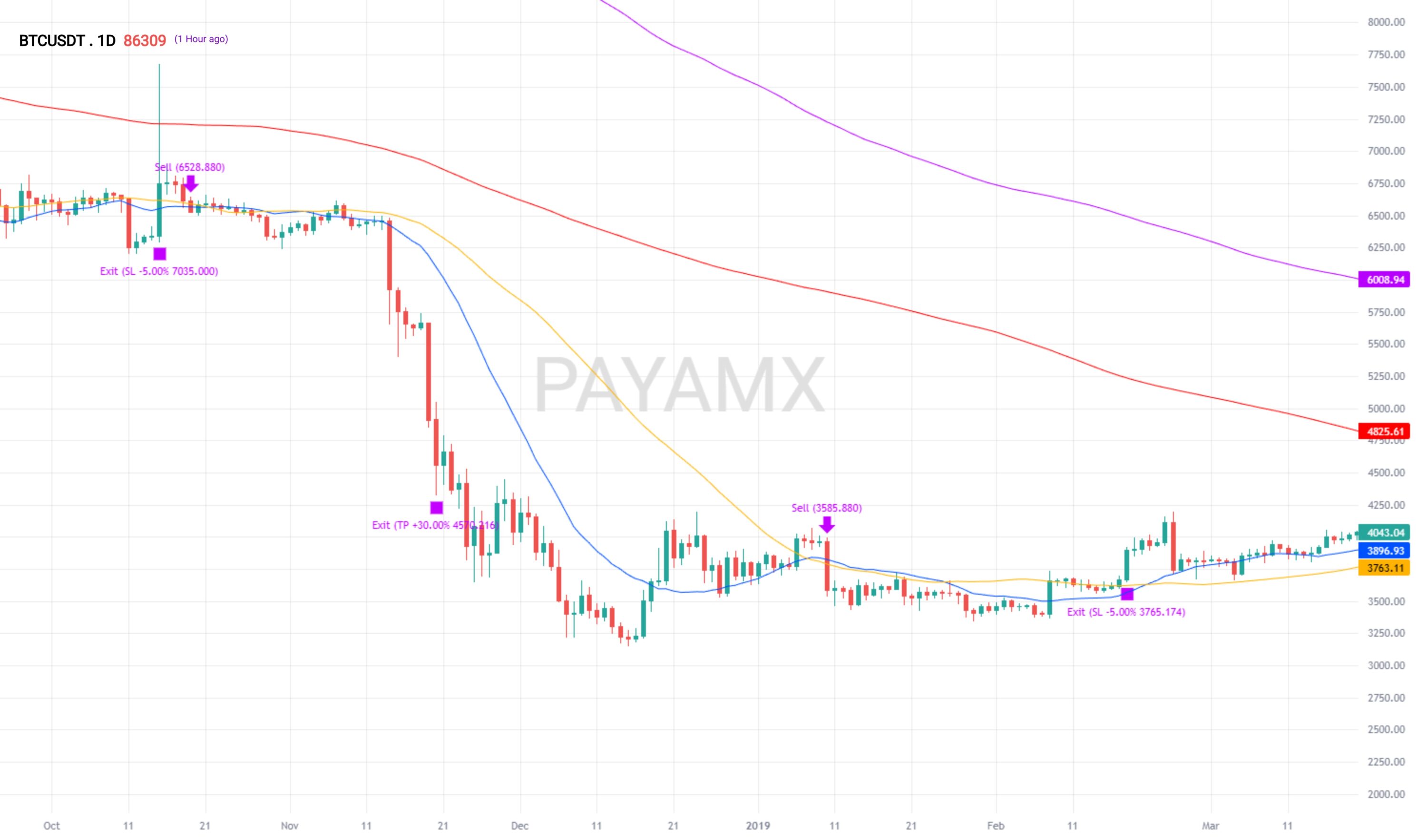 This PayamX short-only strategy integrates both simple and exponential moving averages to identify potential downward market movements. It conceptually tracks price behavior relative to a responsive simple moving average while using a longer-term exponential average as a confirmation of bearish trend alignment. Entry signals are triggered when price moves below the shorter-term average and remains beneath the longer-term reference, indicating a shift toward declining conditions. Risk management